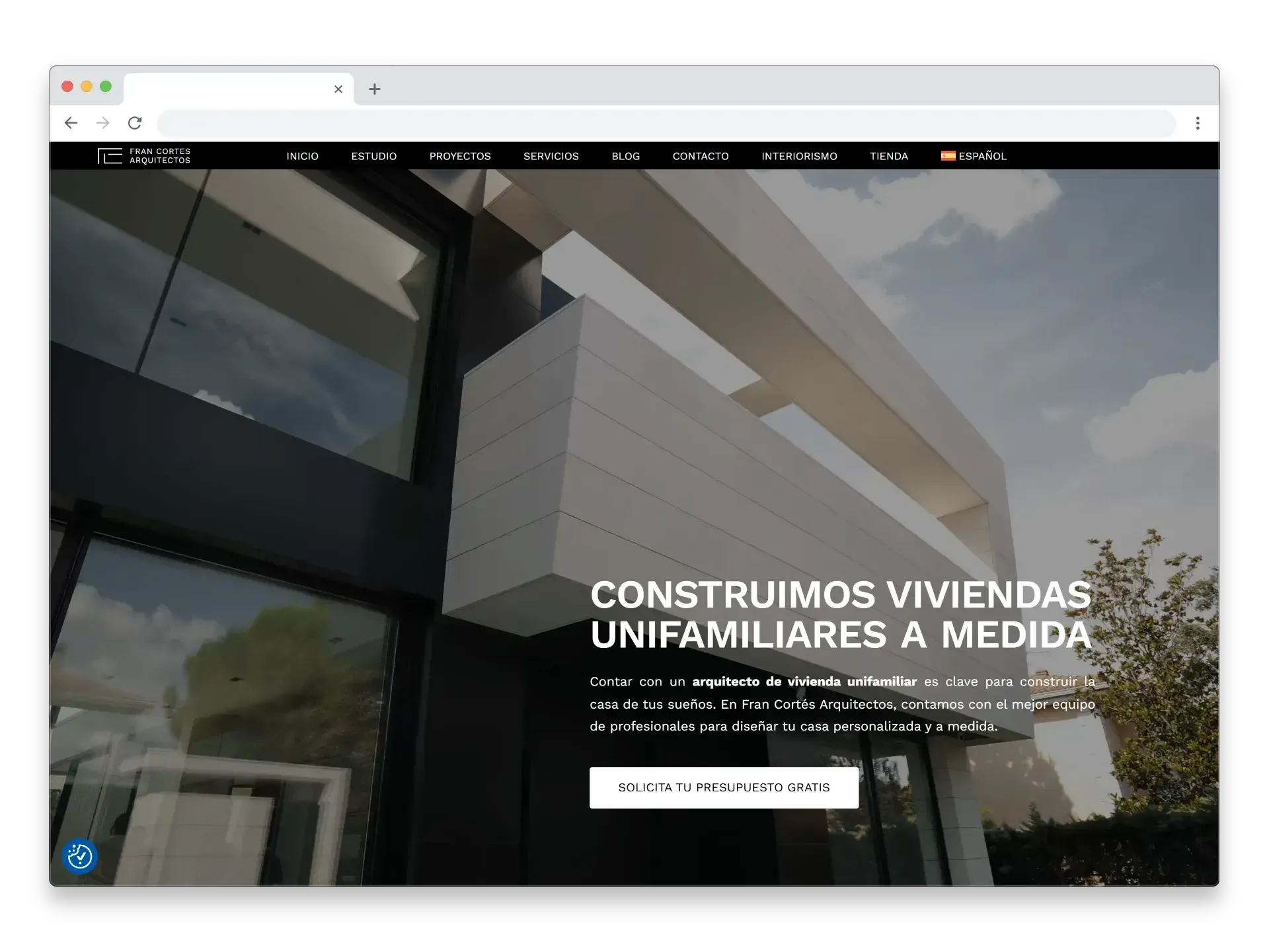 Calle Digital desarrolló un sitio web para Fran Cortes Arquitectos, combinando diseño visual y funcionalidad. La plataforma incluye un portafolio detallado con galerías, secciones informativas sobre la empresa y su equipo, un blog dinámico y una página de contacto.