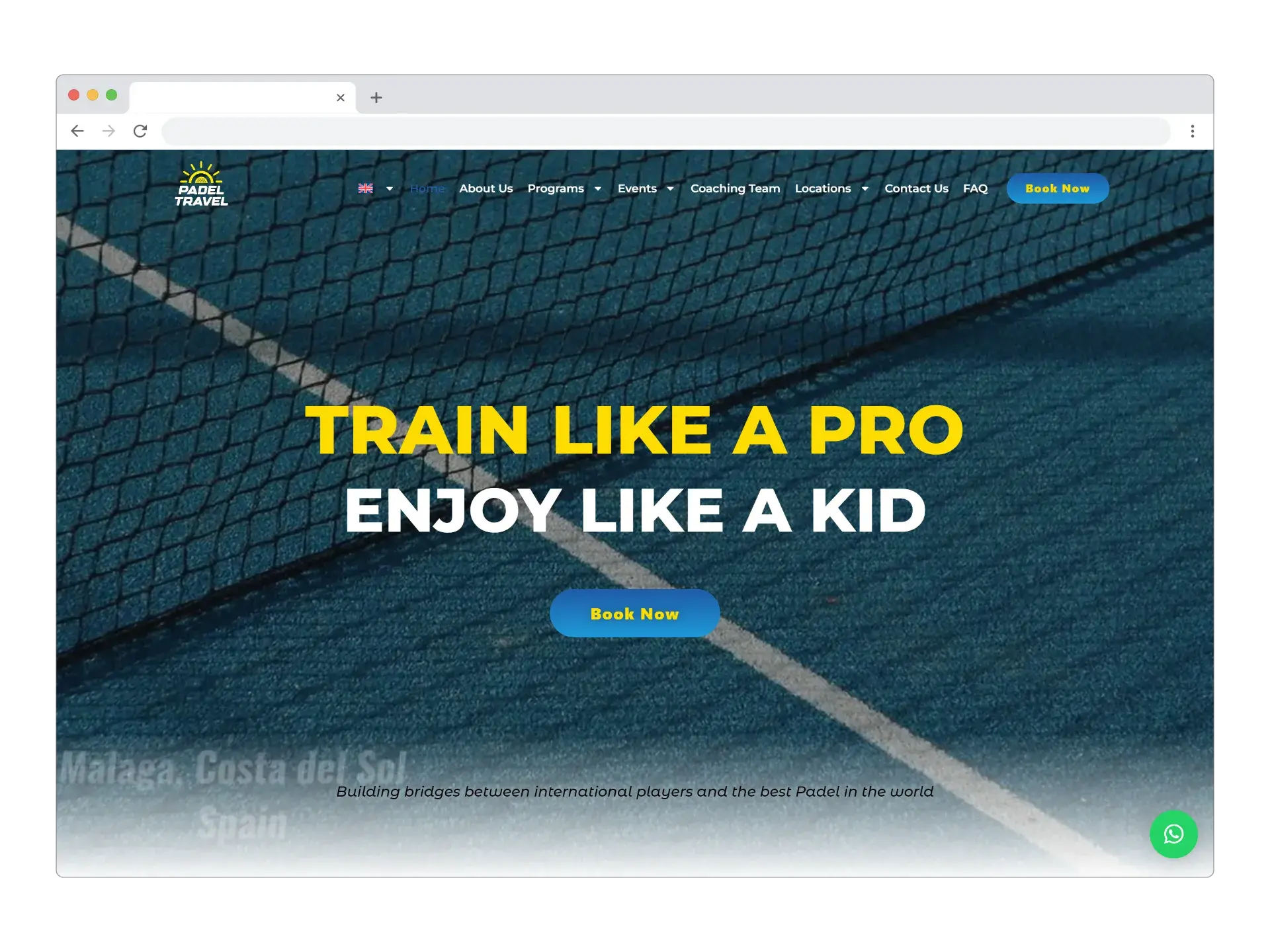 En Calle Digital desarrollamos la web de Padel Travel, especializada en formaciones y eventos de pádel. El objetivo fue crear una plataforma que combinara aprendizaje y entretenimiento, destacando sus programas y eventos a través de un diseño personalizado en WordPress con Elementor Pro. Se optimizó el diseño original para hacerlo completamente responsivo, garantizando una navegación fluida y coherente en móviles, tablets y ordenadores.